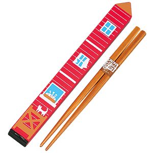 ★ポイントUp5倍★箸&箸箱セット 木の家 レッド 18cm【代引不可】 [01]